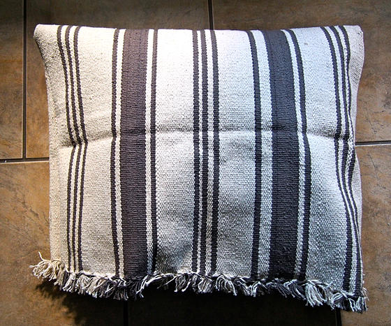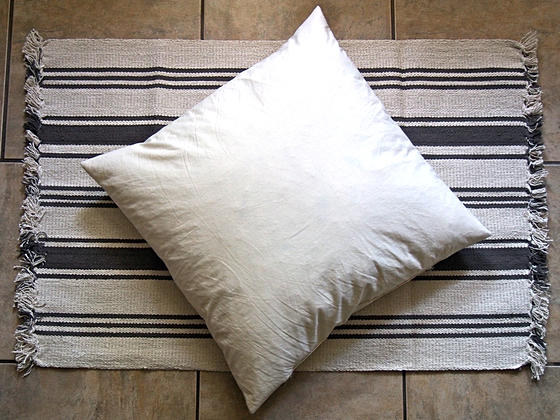 Une fois, en allant au Ikea, j’ai cru avoir eu une idée de génie. Ce dont je ne me doutais pas, c’est que Martha Stewart (plus probablement quelqu’un de son équipe) avait eu la même idée que moi et l’avait rendu disponible sur les interwebs avant même que je ne sois sortie du dit magasin, mais bon j’ai fait mon deuil d’originalité et j’ai tout de même décidé de vous présenter ce petit DIY qui consiste à transformer un tapis en coussin. C’est simple, ce n’est pas cher, c’est original et c’est beau.