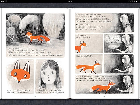 Tout d’abord (et encore une fois), j’ai été charmée par la beauté de l’objet ! Que voulez-vous, les beaux livres, ça m’attire ! Les dessins un peu sous formes géographiques m’ont attirée de par leur perspective. Les pages de la Bande dessinée sont grandes et j’aime le fait que la Bande dessinée n’est pas traditionnelle : il n’y a pas de cases, simplement des pages. Un peu à l’image des contes pour enfants.