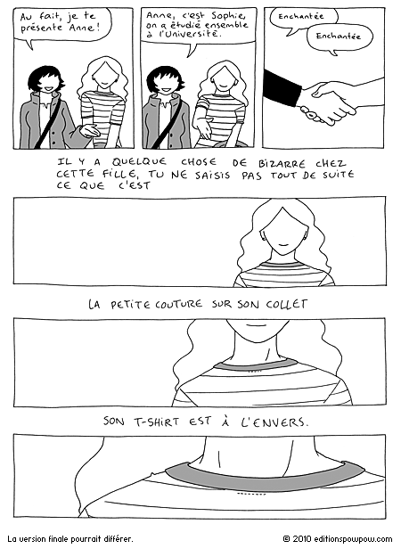 Effectivement, la bande dessinée raconte l’histoire d’Hélène, une jeune fille qui vit de l’intimidation à son école. Cela a des répercussions sur sa vie privée et sur son estime d’elle-même. Elle se trouve laide, grosse et tellement ennuyante.