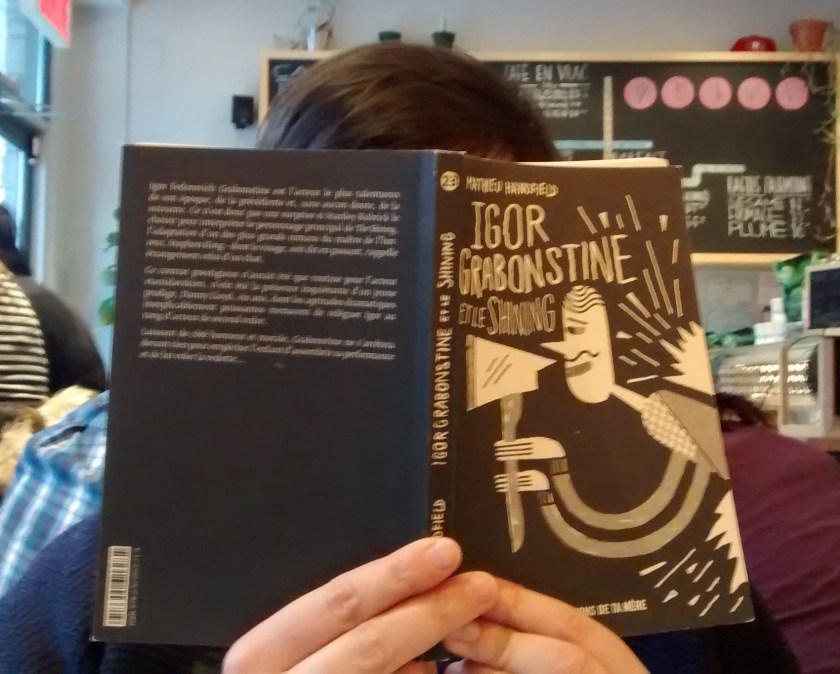 Il s’agit honnêtement d’un des livres les plus absurdes que j’ai lu dans les dernières années, et j’ai adoré! Mathieu Handfield, si tu lis ceci: j’attends impatiemment la suite, Igor Grabonstine à l’école du Mal. Pour vrai, là.