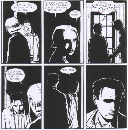 Au premier coup d’œil, rien de plus classique que cette bande dessinée. Typique graphisme américain avec des traits droits et réalistes. Chaque plan est dans sa case. En noir et blanc. Pas de fantaisie. On pourrait dire la même chose des nouvelles qu’on y raconte. Une femme téléphone à son ex, un adolescent travaille dans une imprimerie durant l’été, des jumelles vont en vacances avec leur père. Banales aventures du quotidien. En plein mon genre. Plus une histoire est simple, plus je l’aime. Habituellement, ça réserve des surprises. Le travail se trouve ailleurs. En effet, avec ses simples dessins et scénarios, Tomine en profite pour jouer dans la complexité des personnages. Chaque nouvelle est ambigüe. Les secrets sont bien gardés. Un détail nous échappe. Difficile de mettre le doigt sur ce qui me faisait presque pleurer à la fin de chaque histoire. Un type un peu déprimé repeint la maison de son grand-père avant de la vendre puisque ce dernier vit maintenant dans un foyer de personnes âgées. Un souvenir en particulier lui revient à l’esprit et le fait rire. Rien de dramatique. C’est peut-être la finesse des mots, l’expression d’un visage ou la simplicité de la situation. Mais en trois pages, quelque chose certainement nous serre le cœur. Même chose avec l’homme qui rate son avion et qui revient sur ses pas. Son voyage commence dans sa propre ville. Sa solitude est désarmante. La chute est bien pensée.