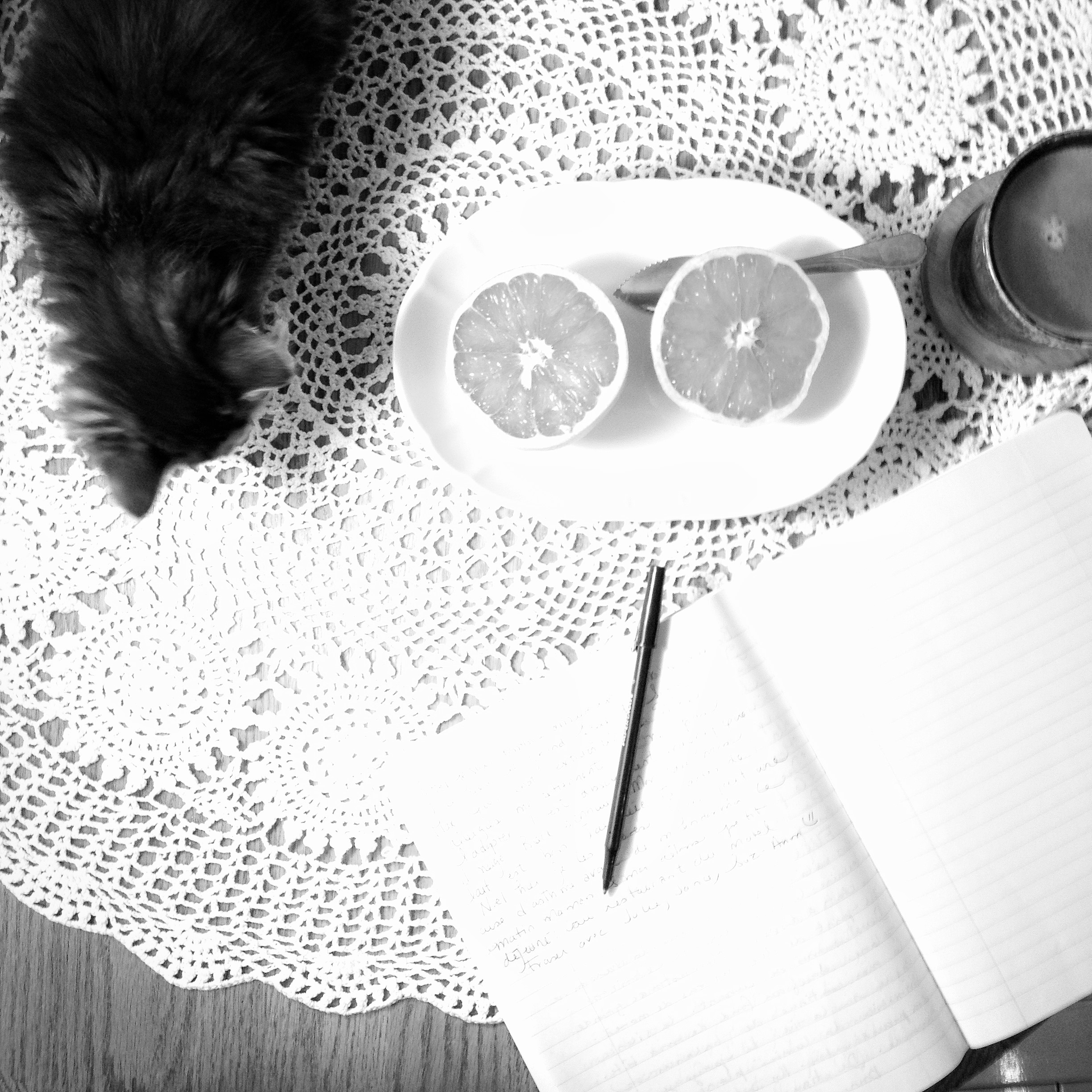 Au fil du temps, j’ai pris plaisir aux pages du matin, en fait j’y suis accro. Une journée sans et je me sens toute croche. L’exercice a sa place bien ancrée dans ma routine matinale. Une routine qui me ressemble, bien sûr. Je prends le temps de savourer un de mes moments favoris, le petit matin. Je me réveille, puis je me fais un bon café et je m’installe pour écrire mes trois pages. Depuis que j’ai une jeune chatonne, Sofia, c’est un peu plus compliqué pour moi. Elle prend mon cahier pour une glissade et mon stylo pour une souris, mais ça reste un beau moment.
