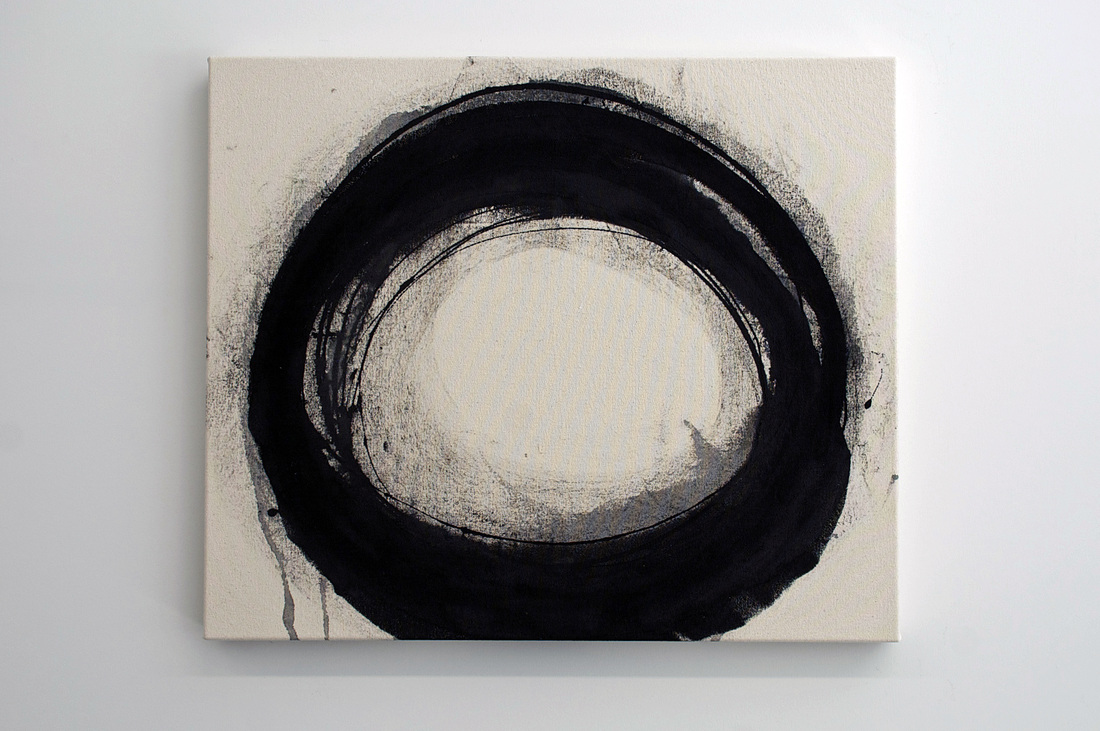 La peinture de Stephanie L’Heureux a quelque chose d’intemporel, de profond et d’essentiel. Une fois tracé, le cercle ne peut être retouché. Il n’y a pas de seconde chance. Ses recherches illustrent l’éphémérité de la vie et arrête dans un moment, un geste, un souffle: le temps.