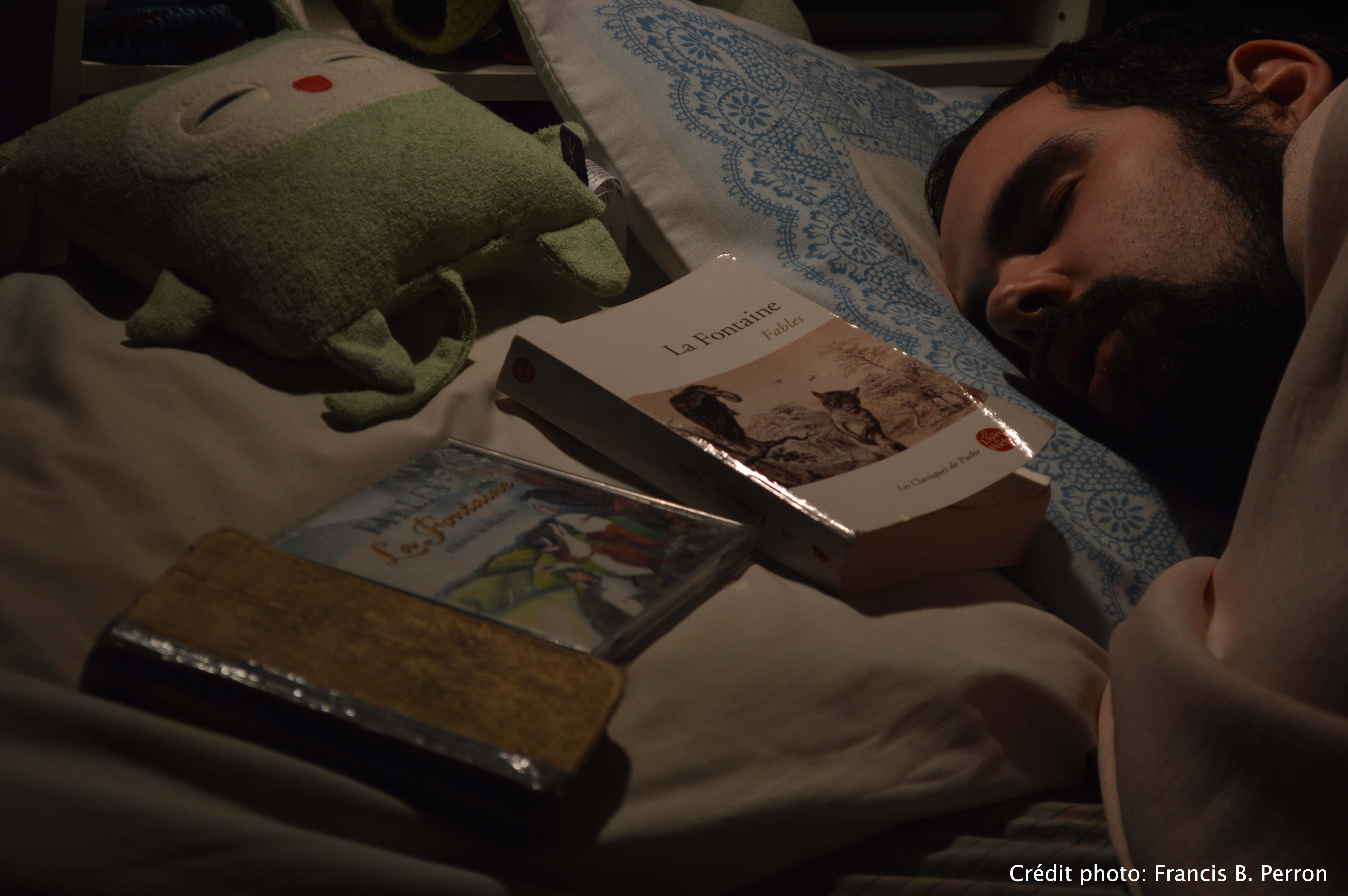 Cela fait maintenant plus de quatre ans. Je rédige à présent mon mémoire de maîtrise, toujours en littératures. Mais les Fables ne m’ont pas quittée: il y a environ deux semaines, j’ai été assaillie par une crise d’insomnie qui m’a épuisée pendant quelques jours. Puis, j’ai eu une idée: et si je demandais à mon copain de me réciter quelques Fables avant de me coucher?