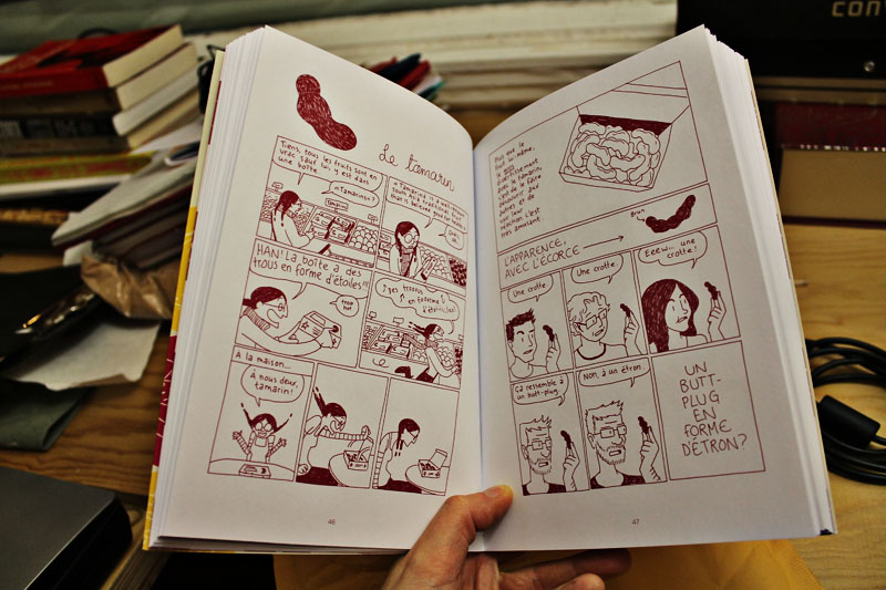 Au départ, Le bestiaire des fruits était une série de planche de bande dessinée parue sur le blogue de Zviane, mais au fil du temps et de ses découvertes, c’est devenu un Fanzine pour finalement se transformer sous forme papier chez les éditions La Pastèque! Cette première parution de Zviane chez ces éditions me fait bien rire, car Le bestiaire des fruits fait partie de la collection Pomelo: Une collection d’ouvrages faussement pratiques!