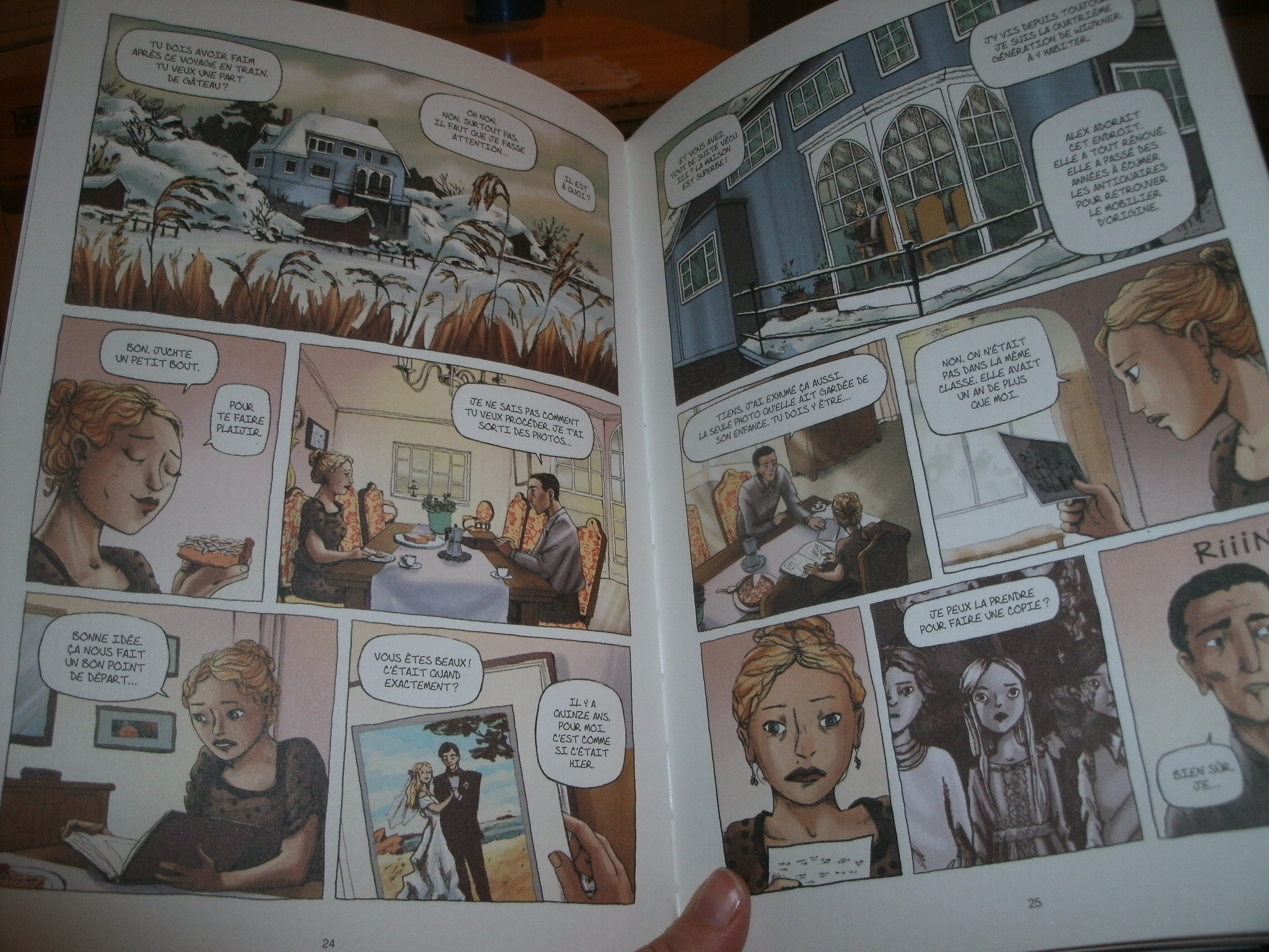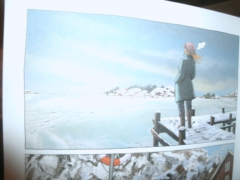CEPENDANT, la première fois que j’ai lu «La Princesse des glaces», c’était sous forme de bande dessinée et j’avais beaucoup apprécié ma lecture. Elle est écrite et dessinée par Léonie Bischoff et Olivier Bocquet. Suite à ma lecture du roman de Camilla Lackberg, j’ai relu la bande dessinée. Je peux vous confirmer qu’elle reste meilleure au roman. Parce qu’elle permet d’éliminer tous les défauts de celui-ci (personnages superficiels, parties du roman inintéressantes, etc.). Puis, sous cette forme, je considère qu’il est plus acceptable à ce que l’enquête avance rapidement. De plus, l’illustratrice est excellente, les dessins sont magnifiques. C’est ce que j’aime le plus de la bande dessinée. La couleur bleu est très présente, ce qui donne un ton plutôt froid. Ils sont également très révélateurs de l’histoire, mais juste assez. Bref, je vous conseille la BD avant le roman!