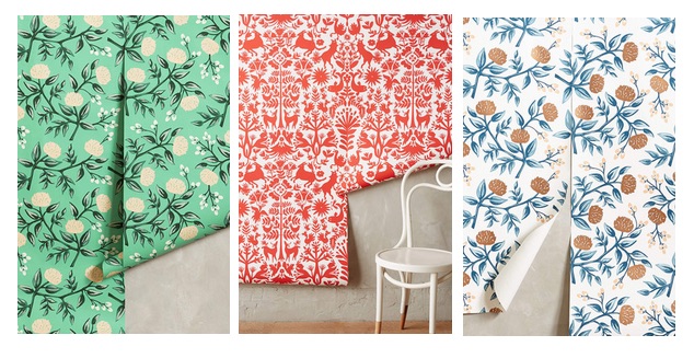 Puisque je vais vivre dans un petit espace, je dois redoubler de créativité pour diviser mon espace. J’aime beaucoup le principe de séparation grâce à différentes couleurs ou avec du papier peint. Le truc, c’est que je veux garder les murs blancs et que je ne veux pas me lancer dans la pose de tapisserie. J’ai surfé le web à la recherche de belles tapisseries autocollantes, mais je ne trouvais jamais ce que je voulais, jusqu’à ce que je tombe sur du papier d’emballage plus que parfait dans une petite boutique sur St-Laurent. C’est là que je me suis dit qu’avec un papier de qualité, un ruban à double adhésif, il y aurait surement moyen de faire quelque chose de beau pour une fraction du prix.