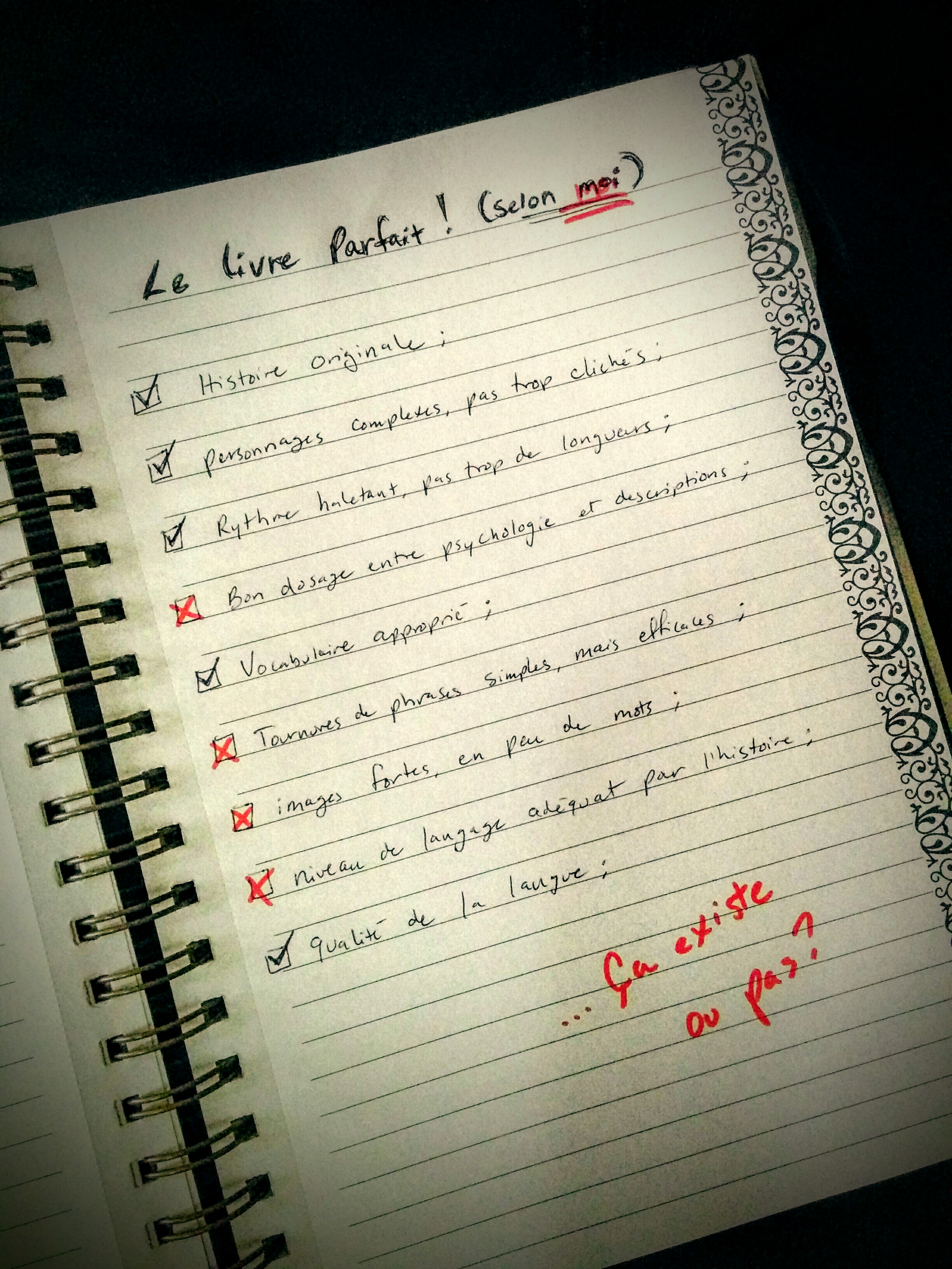 Auparavant, je lisais de tout, je pouvais attribuer, disons, un 4/5 à un livre dont j’avais simplement apprécié la lecture et je n’étais pas (tant) difficile sur le plan de la formulation, du vocabulaire, de la langue. Des milliers d’heures de lecture, d’écriture et un bacc en littérature plus tard, je lis encore de tout, je sais encore apprécier les bonnes histoires… mais la qualité de la langue et l’originalité de la structure ont pris une place que je ne soupçonnais pas! Maintenant, je sais que j’aurais du mal à coter un livre plus de 3/5 s’il ne respecte pas certains critères, même si l’histoire me plaît de façon générale.