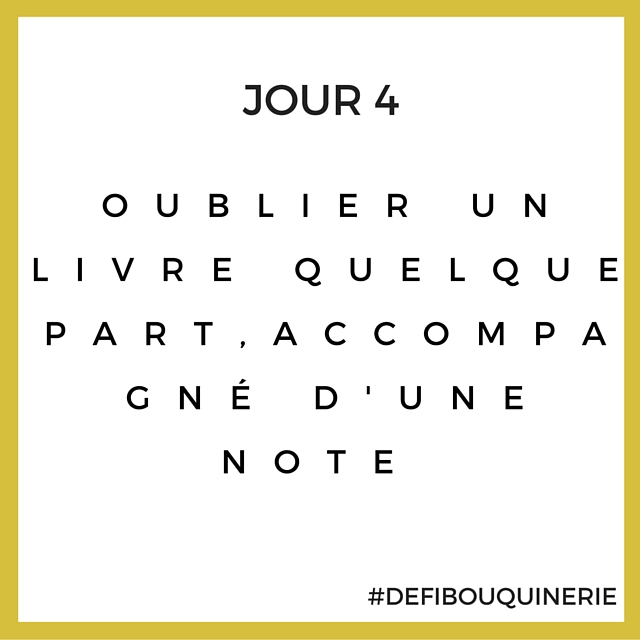 Aujourd’hui, le défi est justement d’oublier un livre quelque part. Préférablement un bon livre, un livre que vous avez aimé, qui vous a marqué, accompagné d’une petite note pour la personne qui le trouvera.