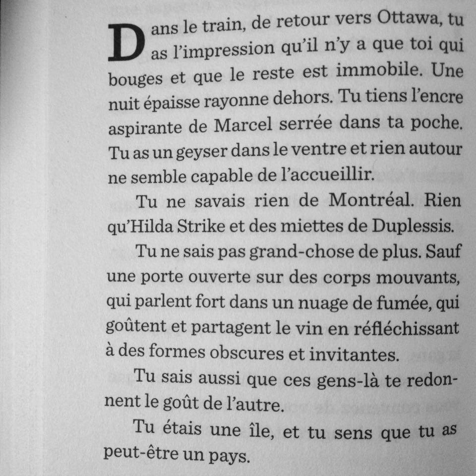 Voilà ! Je pressens que mon histoire avec l’artiste n’est pas terminée, elle s’entame plutôt. À travers tout cela, c’est un peu mon histoire que je découvre. Et je questionne ma position d’artiste, dans le Québec d’aujourd’hui, ce besoin d’être libre jusqu’au bout.