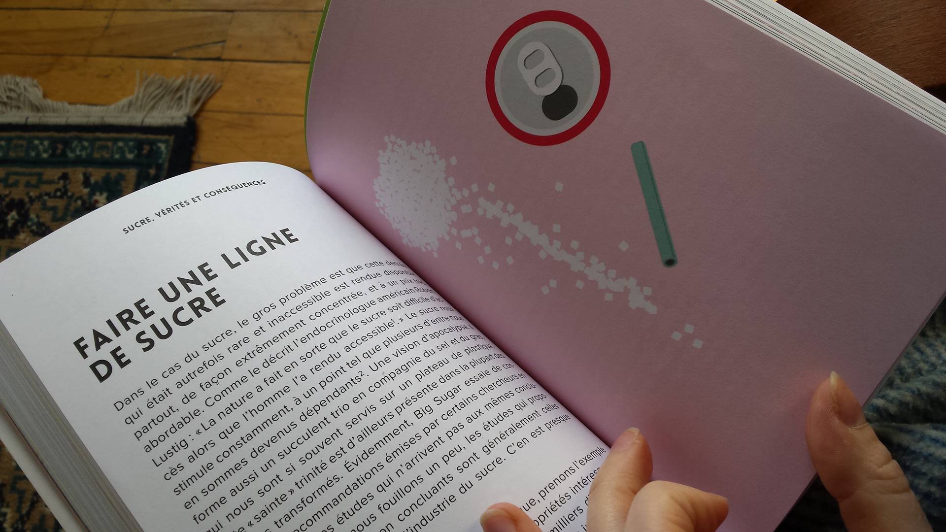 Lorsque j’ai lu la partie sur les maladies liées à une surconsommation de sucre, je me suis demandé avec tristesse pourquoi ces faits n’étaient pas plus connus. Et Catherine Lefebvre m’a bien répondu : la plupart des études scientifiques en lien avec ces maladies sont financées par l’industrie du sucre… Ce serait bien mal vu qu’elles parlent contre leur boss. J’ai pensé aux personnes autour de moi qui souffrent de diabète, de maladies cardiovasculaires, de cancer (passé et présent) et je me suis désolée que ces données soient cachées ou mises sur la faute des méchants gras trans. C’est réellement la partie qui m’a le plus ouvert les yeux sur la société de (sur)consommation dans laquelle nous vivons et qui m’a fait comprendre l’importance d’une telle parution.