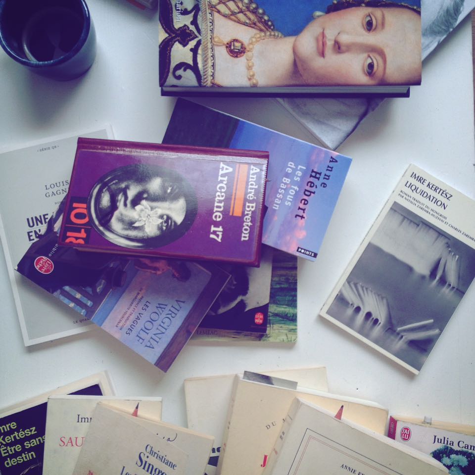 Je me questionnais beaucoup par rapport à mon style d’écriture, autant sur ma façon de construire les phrases que sur l’atmosphère très symbolique de mon écriture. Je me demandais si ça valait quelque chose, puis comme je m’étais dit que moi aussi je pouvais écrire un roman, je me suis dit que ce n’était ni plus ni moins que mon style à moi et que je n’avais qu’à le suivre. Juste pour voir ! Je ne sais jamais si c’est commun ou si c’est quelque chose que je vis personnellement, je ne me pose pas tant la question et puis je me trouve bien seule avec tout cet univers qu’est la création littéraire. Il m’arrive trop peu de pouvoir en parler ou de partager. Et mon silence vient du fait que je développe tranquillement cette forme de création et l’estime grimpe doucement en parallèle. Donc, une fois de plus, je me permets de parler ici de ma propre perception de la construction d’un monde littéraire. Je crois que, tout comme en arts visuels, j’ai une approche symbolique de la création. Pour moi, le monde des rêves, la nuit ou éveillée, celui des désirs, des fantasmes et de l’inconscience sont aussi réels que cette vie que je parcours les yeux ouverts dans un quotidien, dans lequel je cherche continuellement mes repères. Il n’existe aucune frontière entre cette supposée réalité et tout le reste. Et qui dit rêve, par exemple, dit symboles. Comme dans ma manière d’aborder les arts visuels, avec la gestalt thérapie, je conçois le processus d’écriture un peu de la même manière. Et c’est pourquoi je crois que j’ai tant besoin de la réclusion artistique, pour avoir lieu, temps et espace suffisants pour voir ces images qui sont miennes, entendre cette voix qui est la mienne, celle de l’âme, la plus vraie de toutes, du moins celle qui s’en approche le plus. Jusqu’au moment où j’ai senti que la voix de mon roman, celle de mon personnage, mais aussi celle de l’ensemble de l’œuvre en construction, était la mienne, enfin, il y a de cela très peu de temps, j’ai senti que j’avais besoin de prendre un léger recul en terme de lecture. J’avais pris l’habitude de lire beaucoup pendant le processus d’écriture. Pas que du roman, mais de la poésie, de la biographie, de l’essai, etc.. Mais dernièrement, j’ai pris une distance pour entendre plus clairement ce qui tendait à sortir de mon esprit pour s’imprimer sur papier, puis sur l’écran de mon ordinateur.