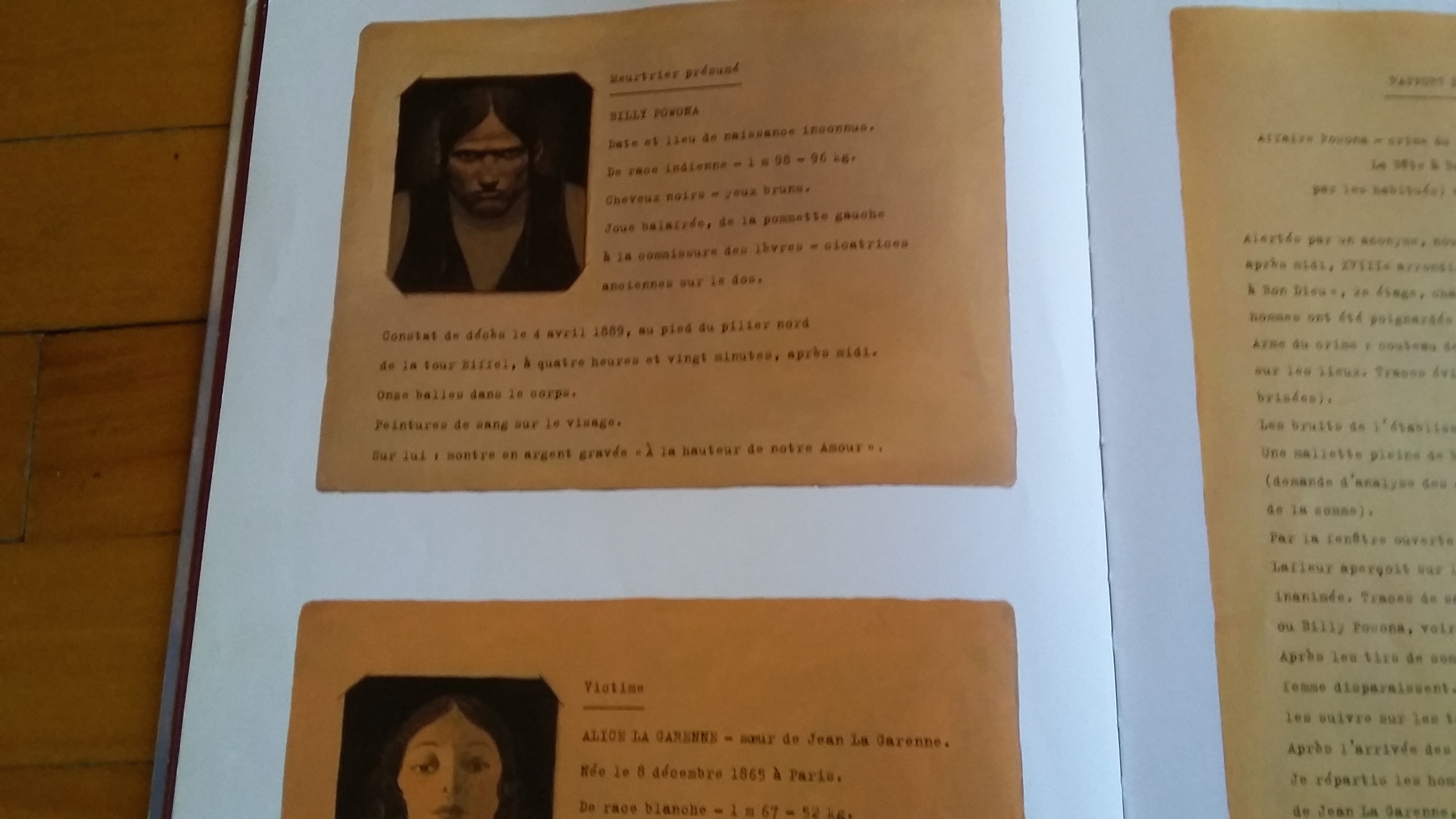 Dans une langue très soutenue et poétique, le lecteur se retrouve dans l’histoire d’un jeune homme, dans les années 1890, amoureux d’une femme pour qui il ferait n’importe quoi. Suite à un crime entouré d’une sorte de complot, il est poursuivi et se jettera, avec sa belle, du haut de la tour Eiffel. Ce livre coup de poing ne nous étonne pas à sa fin « choc », puisque dès le début nous savons comment cela finit. Par contre, l’histoire est frappante parce que nous avons droit à deux versions du même incident, d’abord celui de la presse, à l’aide d’un article de journal, puis celui de l’indien.