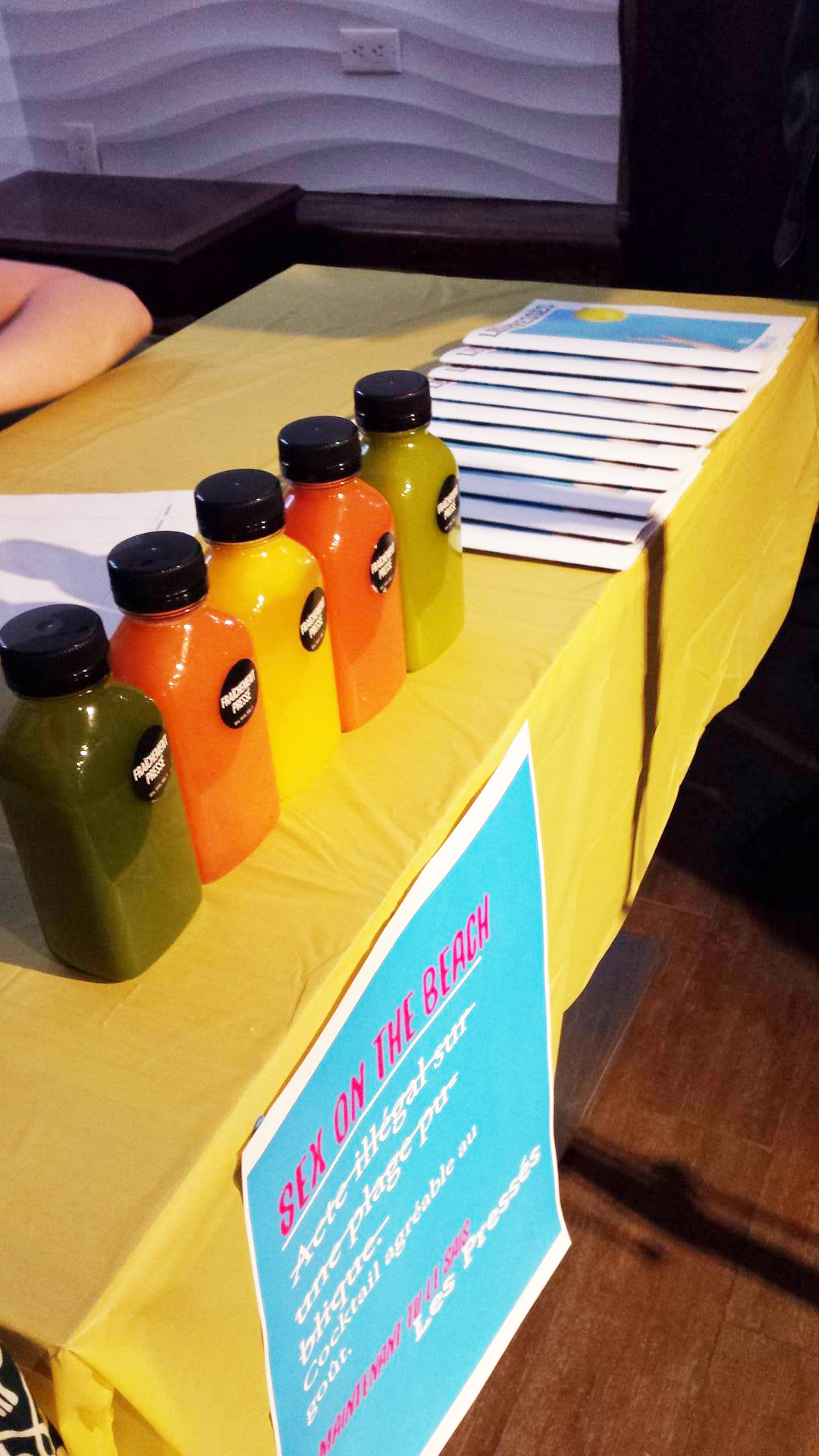 La soirée de lancement, qui se déroulait au bar M sur St-André, était aussi plutôt amusante. Comme c’était l’épreuve finale du projet scolaire, on sentait la fébrilité et, un peu tout de même, le soulagement d’y être arrivé. Les jeux de mots sur être pressé, être dans le jus, citron pressé fusaient de part et d’autre. Les invités sont d’ailleurs tous repartis avec un citron et une recette de limonade maison bien alcoolisée.