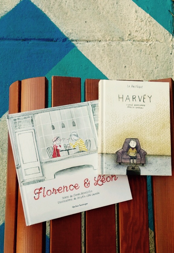 « J’étais émerveillée par les différentes couvertures des livres dans le présentoire d’album jeunesse de ma librairie préférée quand tout à coup, je vois le nom de Simon Boulerice et une jolie couverture qui m’attire. Et de un, il reste dans mes mains celui-là! Je promène ensuite mes yeux plus loin et vois le magnifique album des Éditions La Pastèque et un Harvey pantois devant la télé sur la couverture. Et de deux! Pas pu m’en empêcher. Je retomberai en enfance pour les vacances. »