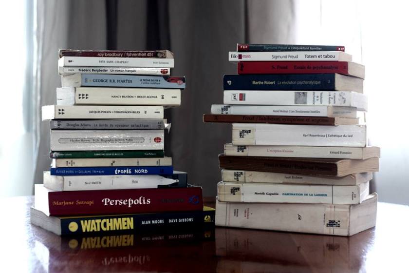 Quand nous faisons le choix de nous inscrire dans un programme collégial ou universitaire en littérature, nous choisissons délibérément de consacrer la majorité de notre temps libre à la lecture. Il était plus qu’évident, dès mon jeune âge, que j’étais destinée à travailler et à vivre parmi les livres. J’ai donc suivi un parcours plus ou moins classique, c’est-à-dire en commençant par le programme d’arts et lettres, profil littérature au cégep pour poursuivre au baccalauréat en enseignement du français au secondaire et pour finalement me rendre à la maîtrise en études littéraires, profil recherche. On m’a déjà dit que les deux seuls endroits où nous pouvions lire sans arrêt, et ce, sans que personne ne nous le reproche, sont la prison et l’école. Ceci n’est pas tombé dans l’oreille d’une sourde. Ceci dit, entre les lectures obligatoires et les lectures théoriques, je constate que mes lectures personnelles deviennent plus ou moins inexistantes. En somme, je ressens tristement ce sentiment de ne pas lire avec liberté. Les lectures obligatoires Évidemment, les cours offerts sont également accompagnés …