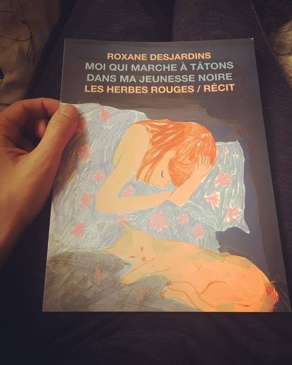 « Une belle découverte en cette touchante Roxane Desjardins avec son récit graphique qui m’a réellement séduite. Il s’agit de petites phrases encadrées, toutes simples, mais qui fessent. Ça parle de mort, d’amour de l’autre et de soi. Et en boni, on y trouve des clins d’œil à Desrosiers (Fourrons la mort), au grand Desjardins d’Abitibi et à Nelligan. »