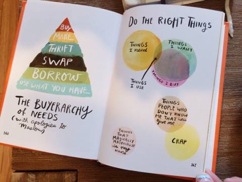 A bunch of pretty things I did not buy de Sarah Lazarovic est un essai graphique plus personnel et axé sur les réflexions écologiques et éthiques de l’auteure et illustratrice. J’ai pris connaissance de ce livre il y a quelques mois, en fouillant le web, et je me suis fortement retenue de l’acheter. Je trouvais ça un peu trop ironique d’acheter un livre portant ce titre tout en sachant que j’essayais de faire attention à mes achats.