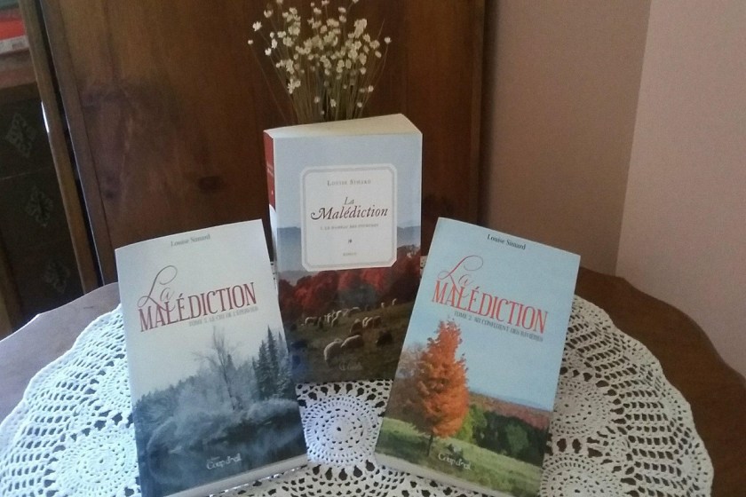 Pour ce petit spécial de la fête des Mères, ma maman a décidé de vous présenter une trilogie qu’elle a dévoré récemment, La malédiction écrite par Louise Simard. Dans cette trilogie, l’autrice nous situe à Sherbrooke au début des années 1800 et démontre un travail de recherche méticuleux pour établir tout le contexte historique de cette époque. L’histoire débute en Nouvelle-Écosse en 1802 où un médecin doit quitter sa femme enceinte lors d’un gros orage pour porter secours à un homme. Lors de cette même nuit, sa femme donnera naissance à une fille nommée Charlotte. Malheureusement, la mère ne survivra pas à l’accouchement. À la suite de cette nuit tragique et au cours des premières années de vie de Charlotte, plusieurs accidents mortels se produiront, dont celui de son père. Puisque ces événements coïncident toujours avec la présence de l’enfant, celle-ci sera accusée de porter en elle une malédiction. Pour sauver sa petite-fille, la grand-mère de celle-ci l’amènera à Sherbrooke.