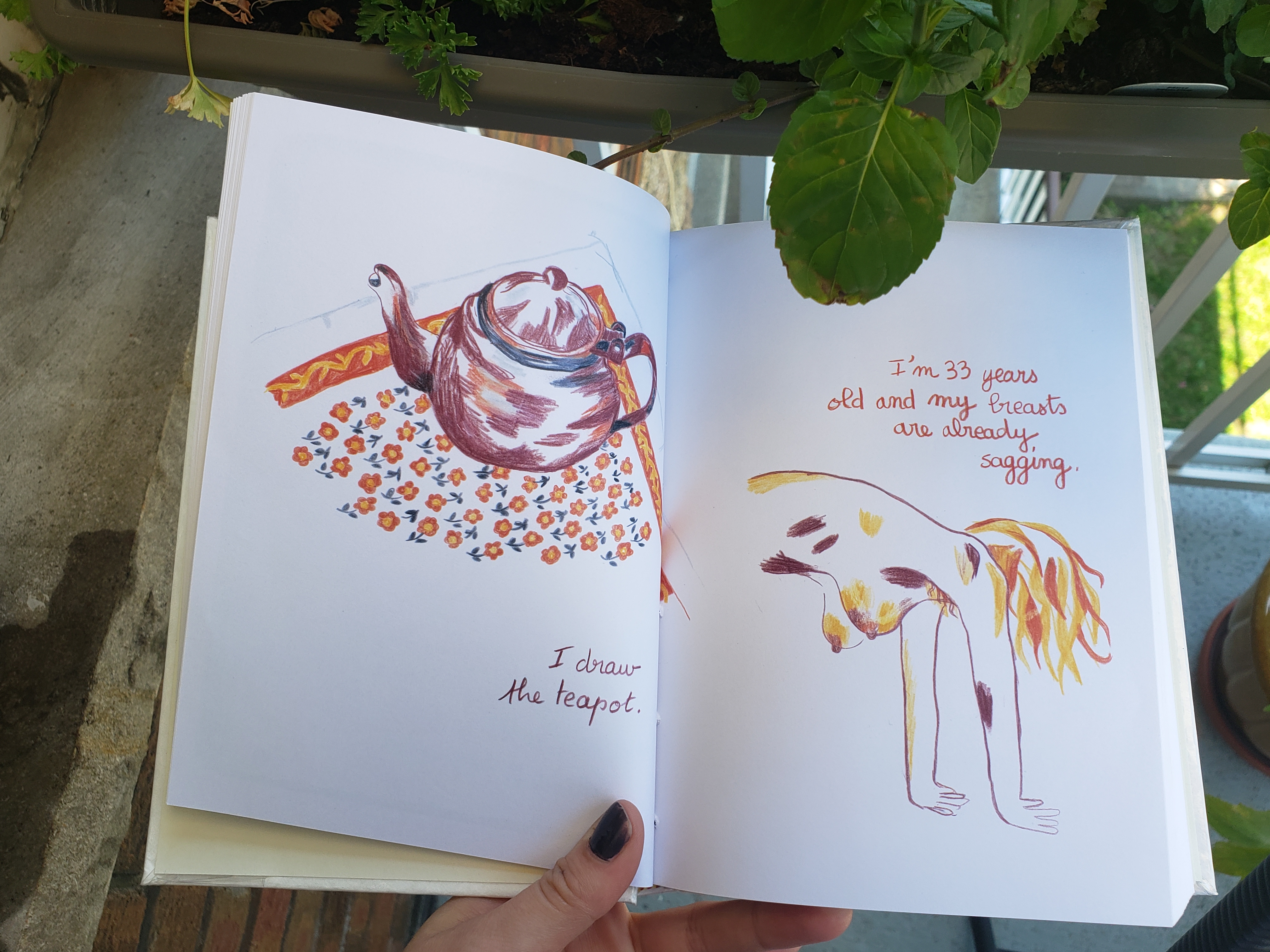 C’est à travers des dessins si beaux, aux couleurs pastels, qu’elle raconte son histoire et expose ses anxiétés. C’est d’ailleurs ce qui m’a tout d’abord charmée dans l’œuvre de Delporte, sa capacité à témoigner des souffrances humaines à travers une prose douce et des dessins charmeurs. La lire, c’est comme un vent de fraîcheur qui souffle sur nos blessures. C’est se sentir accompagnée dans cette douleur qu’on croit être la seule à vivre.