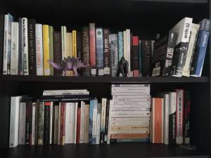 Pour mes livres, j’ai fait un énorme ménage de ma bibliothèque… Il me reste « seulement » deux tablettes de livres à lire! Donc, j’essaie de lire au moins un livre par semaine choisi au hasard par mon copain dans cette pile-là. Mon objectif est de ne pas racheter de livre avant de tous les avoir lus.